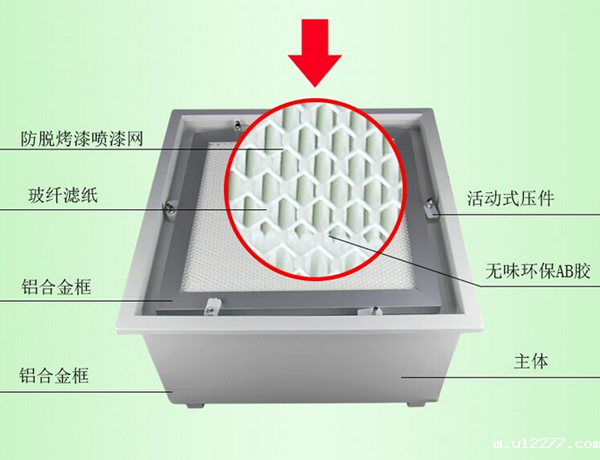 1、DOP液槽密封式高效过滤器外框:铝合金外框。