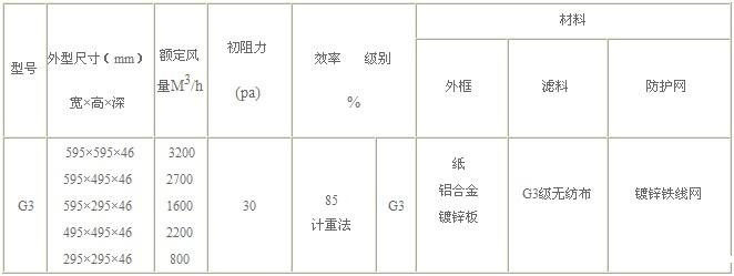G系列初效空气过滤器分八个品种,分别为:G1,G2,G3,G4,GN(尼龙网过滤器),GH(金属网过滤器),GC(活性炭过滤器),GT(耐高温初效过滤器)。
