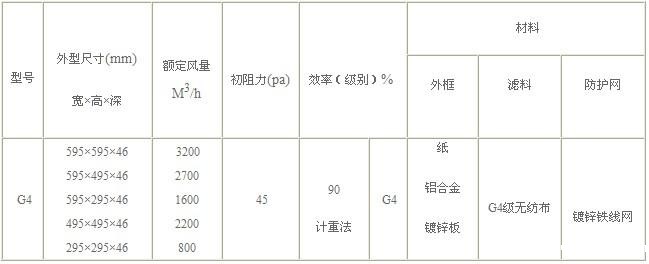 G4级初效过滤器主要适用于空调与通风系统预过滤、洁净室回风过滤、局部高效过滤装置的预过滤,主要用于过滤 5um 及以上粒径的尘埃粒子。