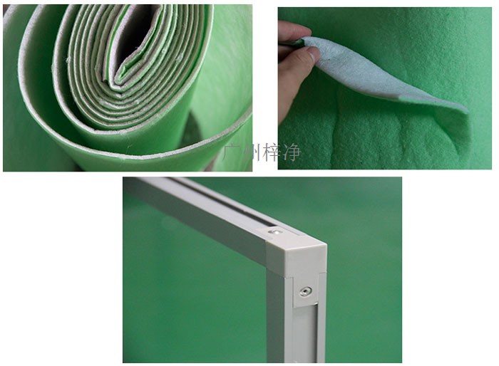 滤料采用优质聚酯合成纤维,可多次清洗再利用,使用寿命长,蓬松渐密的纤维结构,保证了较高的聚尘率及较大的容尘量,有效延长其后端中效过滤器的使用寿命。另外我公司可以根椐客户现场要求量身定做。