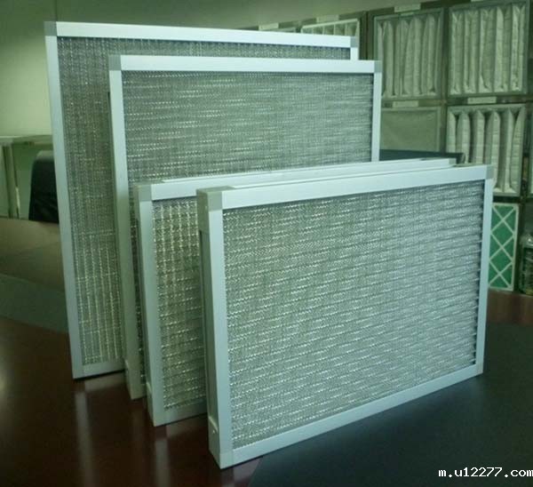金属孔网初效过滤器分别铝网过滤器采用波高为6mm的铝网制作,铝网过滤器铝网孔径为3*6mm,铝网厚度为0.45mm,坚固耐用。